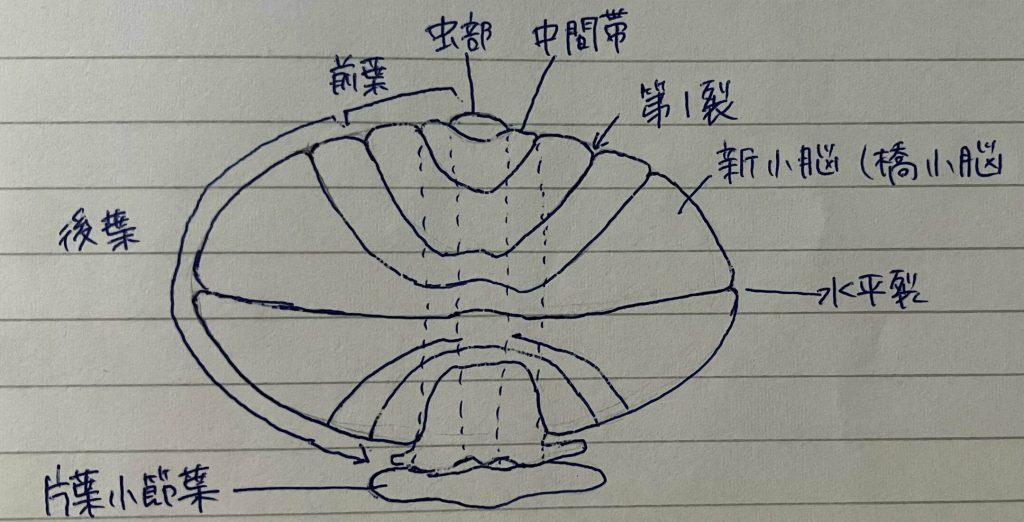 • 小脳は橋と延髄の背側にあり、第4脳室の天井を作る